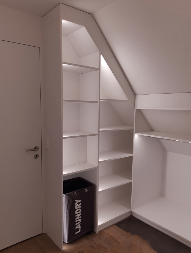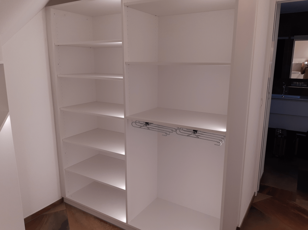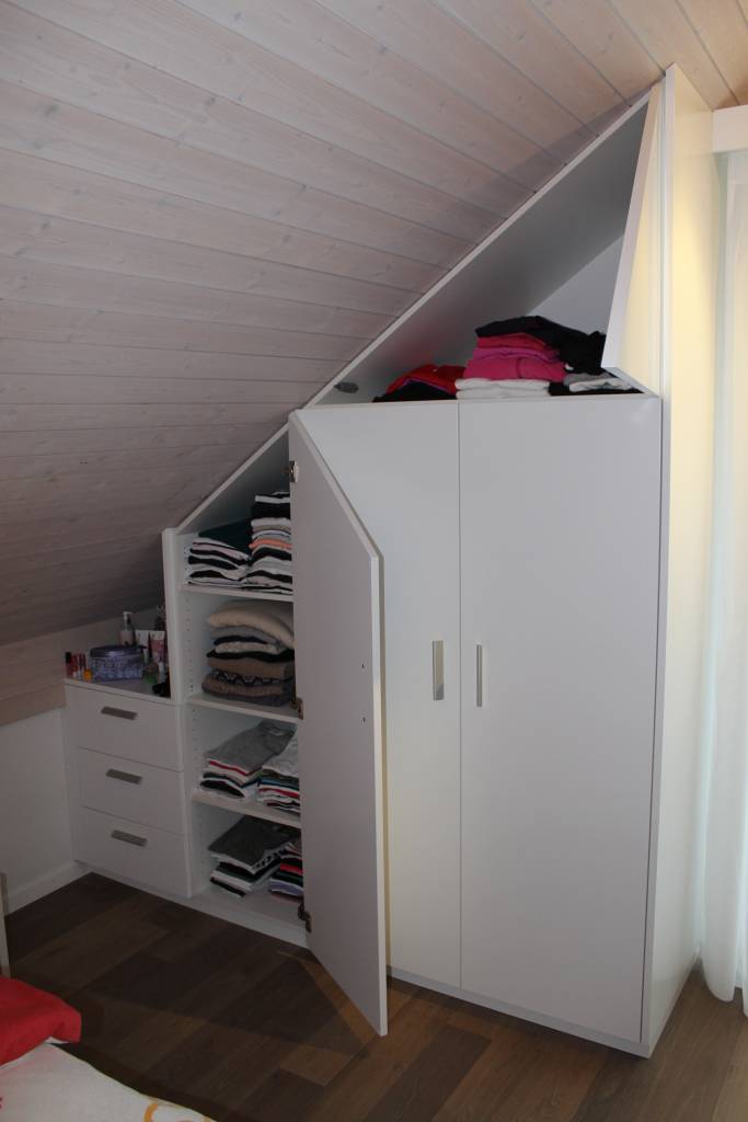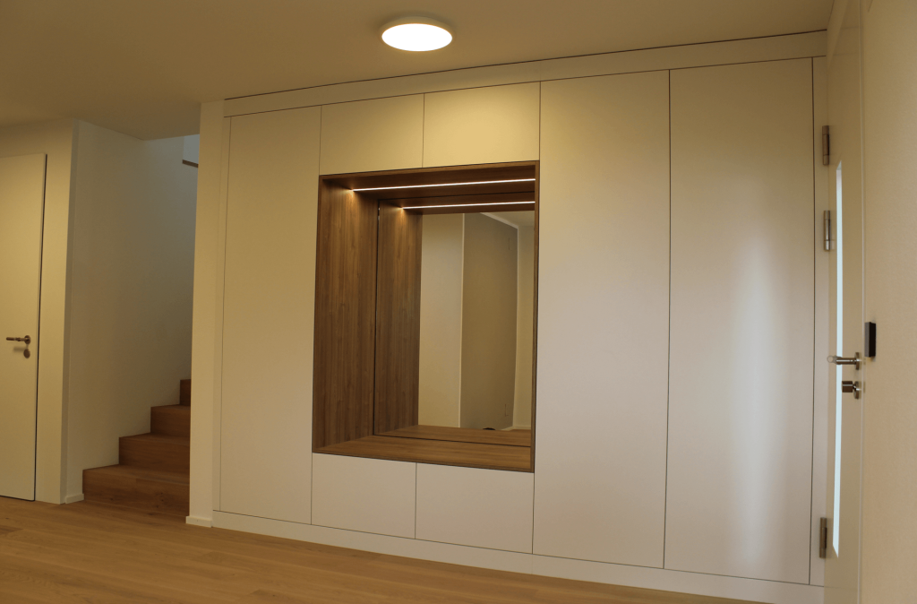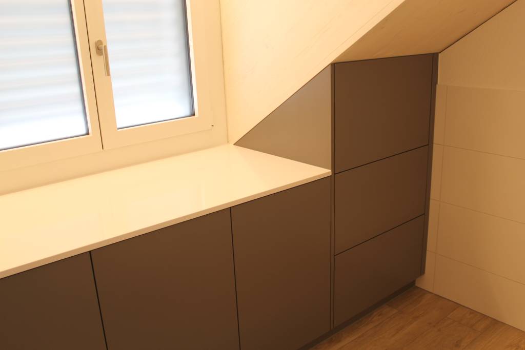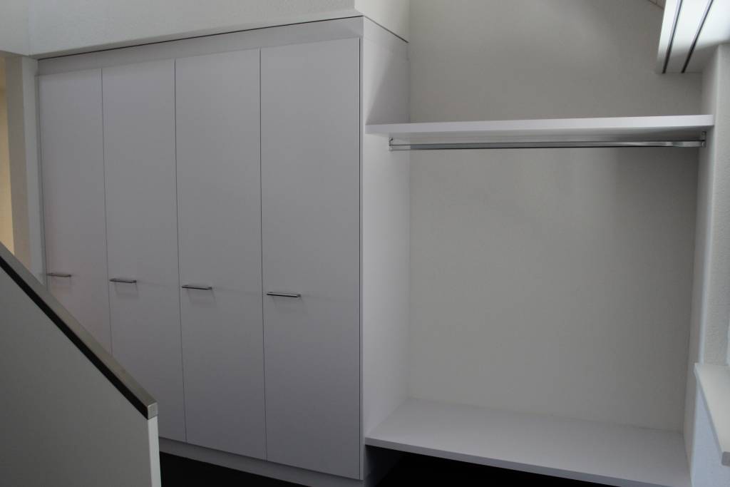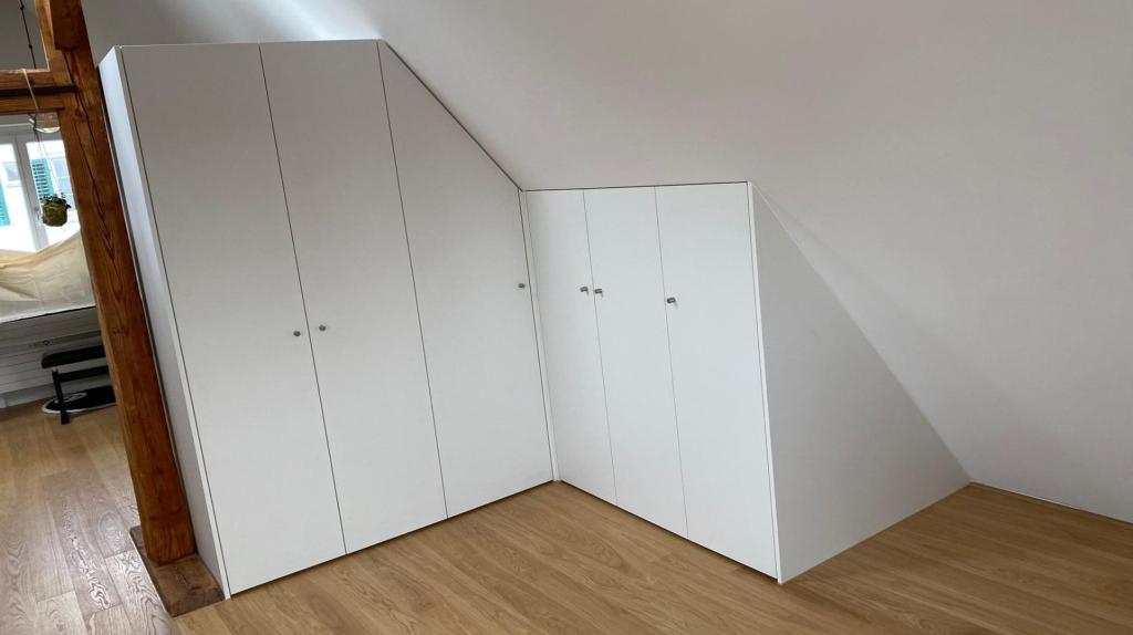 Aus grosser Material- und Systemvielfalt fertigen wir freistehende und eingebaute Schränke. Jeder zur Verfügung stehende Platz – besonders unter Treppen, in Dachschrägen oder Zimmerwinkeln – wird optimal ausgenützt. Sie werden überrascht sein, wie viel Raum Sie gewinnen können! Lassen Sie sich von uns beraten, auch beim Auffrischen oder Reparieren Ihrer bestehenden Schränke.