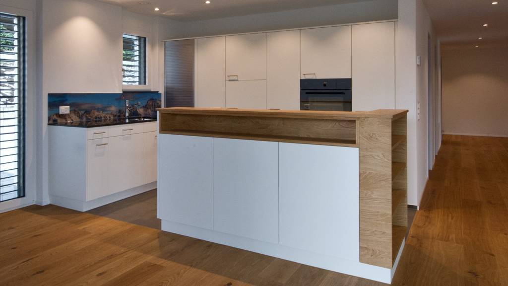 Küchen im Schweizer und Euro Masssystem / Einen Ansprechpartner für alle Bereiche inkl. der Planung und Montageleitung der neuen Einbauküche / Demontage und Entsorgung der alten Küchenmöbel und Geräte / Wechseln von Fenstern / Lieferung und Montage von Simsen und Vorhangbretter, wenn gewünscht, in gleicher Ausführung wie die Küchenelemente / Erstellen von Trennwänden inkl. Schiebe- oder Flügeltüren / Bauleitung und Handwerkerkoordination